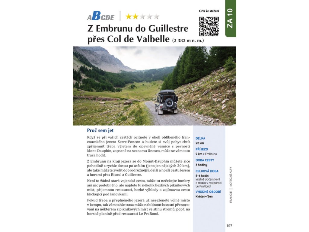 Ať už máte nabušený off-road, SUV, motorku nebo docela obyčejné auto či dokonce obytnou dodávku, podíváte se na úžasná místa v Alpách a objevíte nádherný svět alespoň trochu mimo civilizaci. U každé trasy najdete podrobnou mapu se souřadnicemi důležitých bodů s možností stažení do navigace ve formátu GPX.