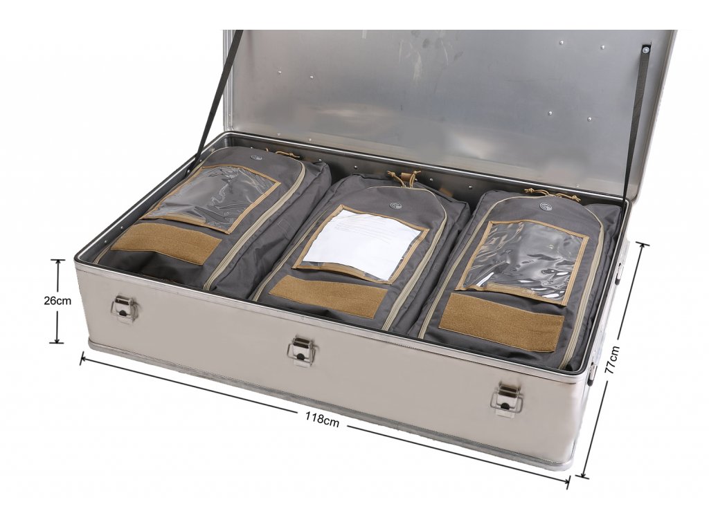 Velká přepravní hliníková bedna, která je, díky svým rozměrům, vhodná na přepravu kempingových stolů, židlí a ostatních objemných věcí.