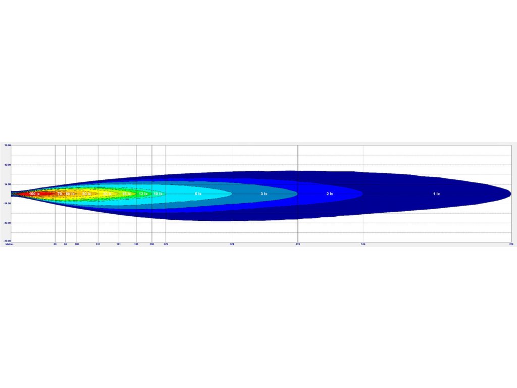 - Výstup – 1 lux @728m, 9 279 lumenů, celkový reálný výkon 8 552 lumenů