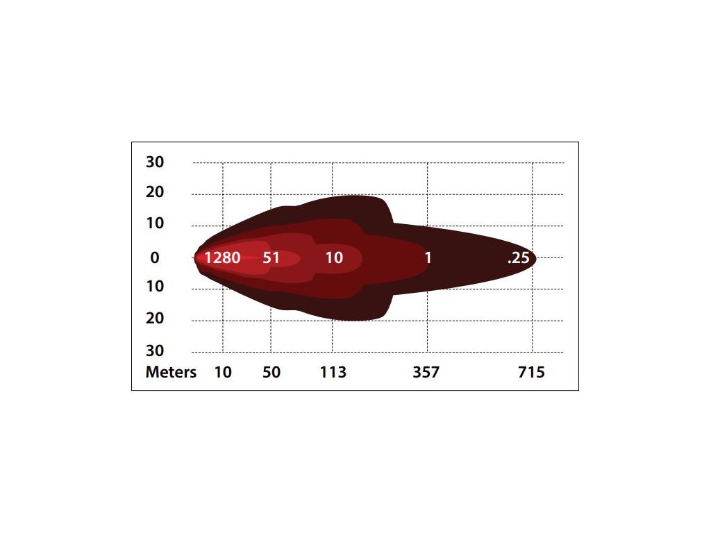 1280 Lux ve vzdálenosti 10 m, úhel paprsku 20° rozptylový, 10° bodový