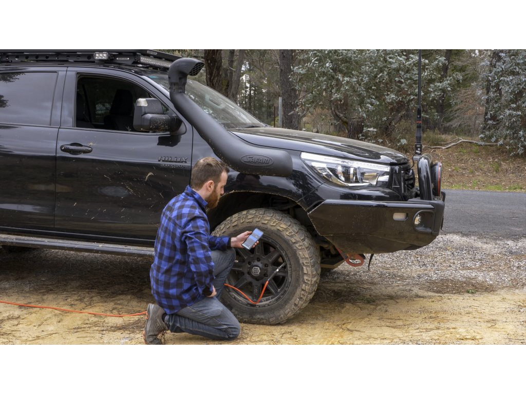 Huštění pneumatik nikdy nebylo jednodušší nebo rychlejší, než při vybavení systémem kontroly tlaku vzduchu od firmy ARB. Umožní vám využívat pohodlí vaší místní čerpací stanice při používání kompresoru vzduchu k huštění pneumatik přímo ve vašem 4WD. Chcete-li používat kontrolu tlaku vzduchu ARB, nastavte jednoduše „cílový tlak“ pomocí mobilní aplikace „ARB Pressure Control“ a poté připojte standardním způsobem (není nutný tlakoměr) vzduchovou hadici od kompresoru k ventilku pneumatiky vašeho vozu. Kompresor zjistí ve spojení s jednotkou kontroly tlaku vzduchu aktuální tlak v pneumatice a poté začne kolo nafukovat až do dosažení přednastaveného tlaku. Jakmile je dosaženo cílového tlaku, bude kompresor hodnotu tlaku udržovat a odešle do vašeho mobilního telefonu zvukové upozornění s vibracemi. Poté odpojte hadici od pneumatiky a připojte ji na další kolo.