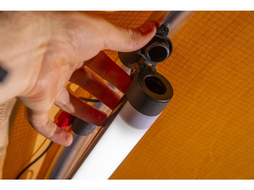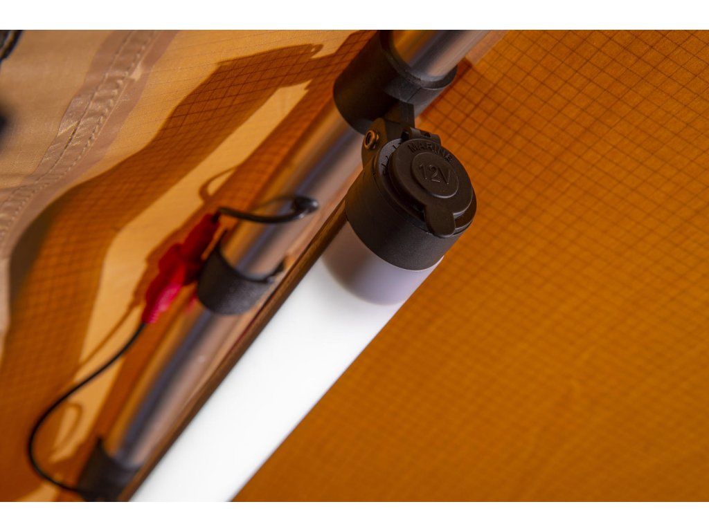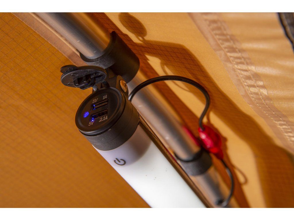 - Osvětlení: 300 lumen LED dotyková lampa, 2 x USB zásuvka a 12V zásuvka na cigarety