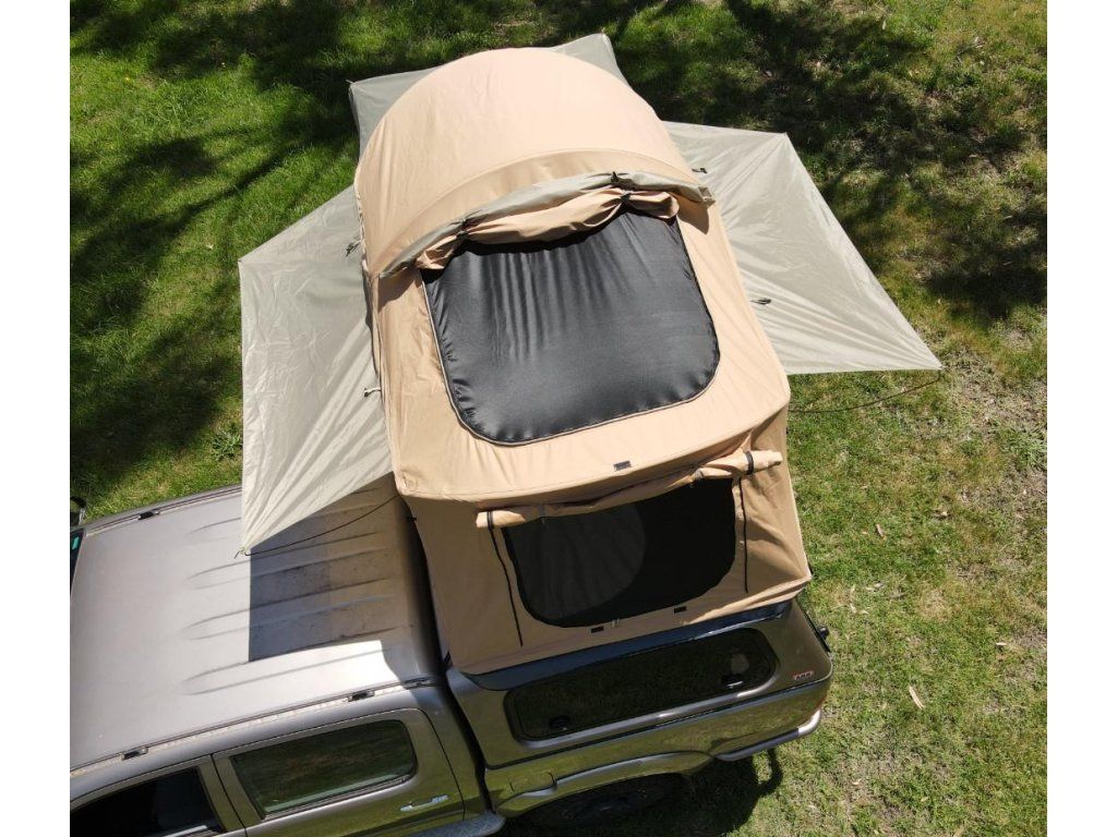 - Plátno: 300g/m2 bavlněné rip-stop plátno a 420D oxford polyester na střeše a okenních markýzách. Potažen vláknem odolným proti UV záření a plísním pro prodloužení životnosti stanu.