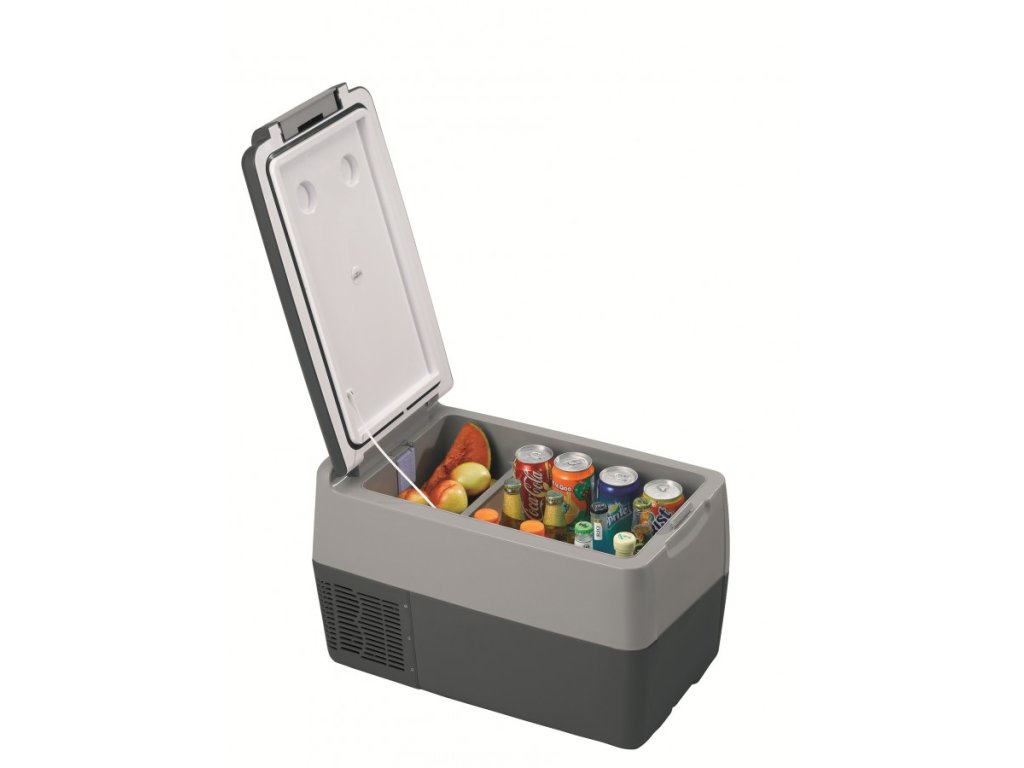 Vnitří hrubý objem 30litrů nemožňuje umístění 1,5litrových lahví nastojato (výška 29cm maximálně, velké lahve lze umístit šikmo), ale při troše skromnosti pojme vše potřebné na Vaši cestu. Výparník je hliníkový (perfektní tepelná vodivost, korozivzdornost, nízká váha). Vnitřní prostor je rozdělen na dva, pro hluboké zmražení (samozřejmě jde o teplotu, kterou si nastavíte) ca 26 litrů a pro chlazení ca 4,5litrů. Celý prostor je osvětlen elegantním modrým světýlkem.