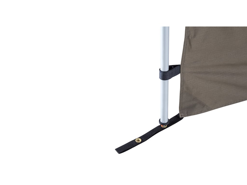 - Může být uchycena kolmo k zemi, nebo pod šikmo, což zvětší krytý prostor pod markýzou