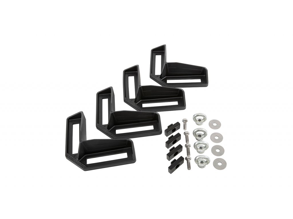 Sada 4 ks Univerzálních držáků beden či nákladu ke střešním nosičům. Rohové držáky podrží váš náklad na správném místě při menší spotřebě upevňovacích prostředků.