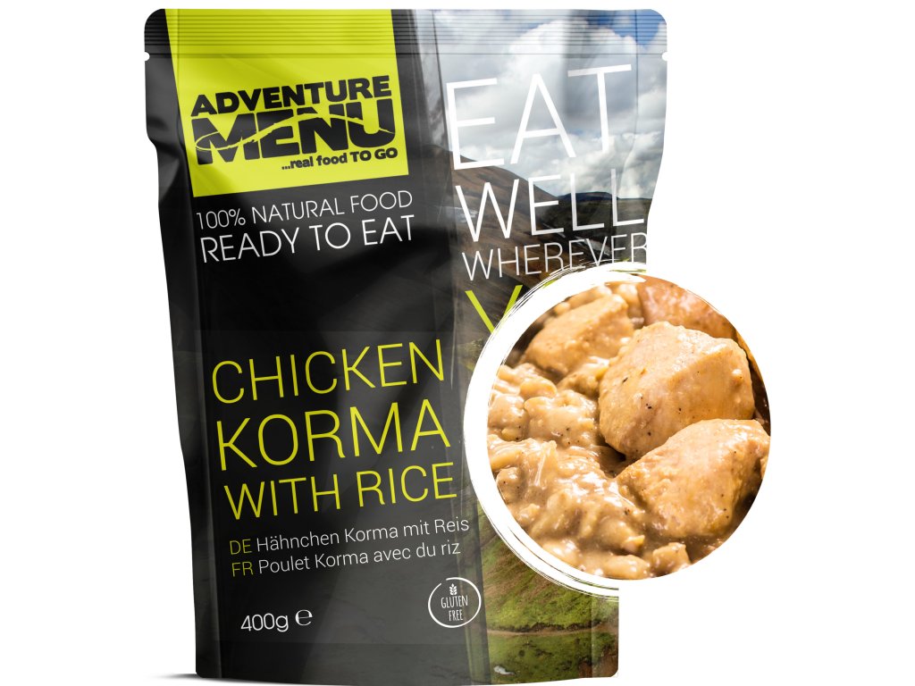 kuřecí prsní maso ( 30%), voda, rýže natural (12%), smetana, cibule, kokosové mléko, rýžová mouka, kukuřičná mouka, strouhaný kokos, řepkový olej, sůl, cukr, směs indických koření (garam masala, římský kmín, skořice, kayenský pepř, kurkuma), česnek, citron,zázvor, sušený zázvor