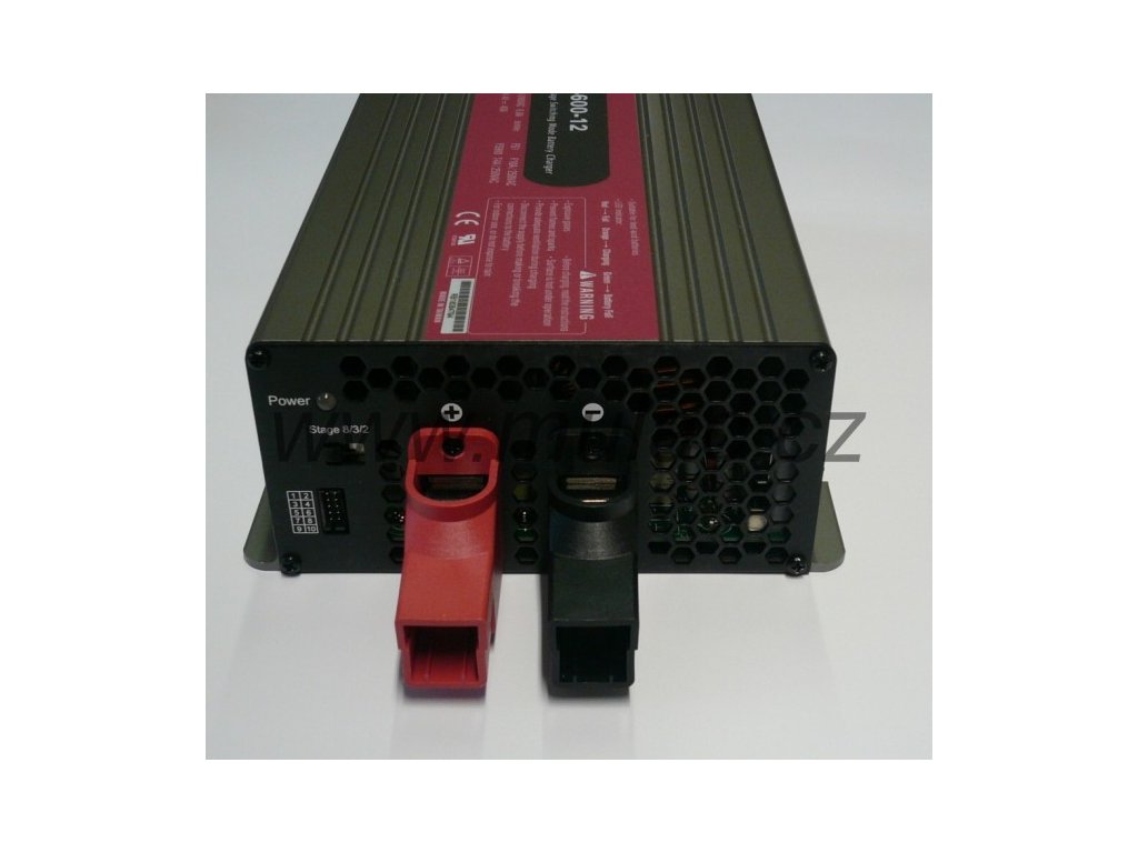 Plně automatický nabíječ PB-600-48 pro profesionální nebo velmi časté použití. Nabíječ pro 48V trakční, staniční, nebo startovací akumulátory s výkonem 600W / 10,5A. Nabíječ se dodává bez vstupních a výstupních kabelů. Hlavní vlastnosti (_datasheet PB-600-48_): Nabíjení je řízeno mikropuserfiles/file/PB-600.pdfrocesorem 2/3/8 fázové nabíjení volitelné uživatelem Teplotní kompenzace nabíjení Univerzální vstupní AC napětí (90~264VAC nebo 127~370VDC) Zabudovaný aktivní PFC, PF>0,95 Ochrany: přepolování, zkrat, přepětí, přehřátí 3 barevná LED indikace Zabudovaná funkce vzdáleného zapnutí a vypnutí, indikace stavu nabíjení atd. Otáčky ventilátoru řízeny Technická specifikace: Nabíjecí napětí: 57,6V Udržovací napětí: 54,4V Výstupní maximální proud: 10,5A Doporučená kapacita nabíjené baterie: 35-105Ah Vstupní napětí: 90~264VAC (47-63Hz) nebo 127~370VDC Nabíjecí možnosti: 2/3 nebo 8mi fázové nabíjecí programy Pracovní teplota: -20- +60°C Pracovní vlhkost: 30-90% nekondensující Bezpečnostní standardy: UL1012, TÜV EN60335-1, MTBF (střední doba od poruchy k poruše): 135.600hodin, ca 15,5 roku Rozměry: 230/158/67 mm Hmotnost: 2,2g Součástí výrobku NENÍ přívodní šňůra na 230V, a k nabíječi se NEDODÁVAJÍ kabely pro připojení k bateriím resp. vozidlu.Doplňkové parametry