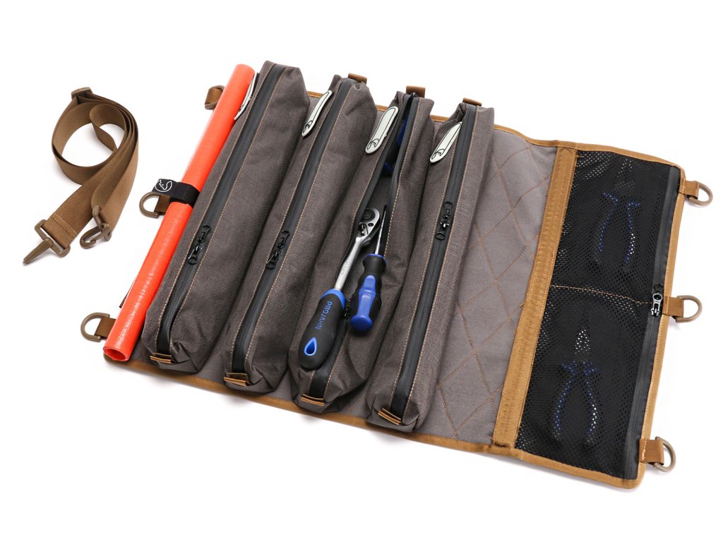 Tool Roll se dá pohodlně sbalit i v případě, že jsou všechna pouzdra a kapsy plné. Jeho zarolování a zapnutí je otázkou vteřin, díky dostatečné velikosti obalu a jednoduchosti zapínání. Díky uchu a popruhu se dá Tool Roll pohodlně přenášet i s plným obsahem. Snadné je i jeho přichycení na auto, strom nebo zeď díky všitým okům. Robustní, vysoce kvalitní Nylon, stejně jako kvalitní zipy a v neposlední řadě dobře odvedená práce zaručují dlouhou životnost i při tom nejextrémnějším nasazení.