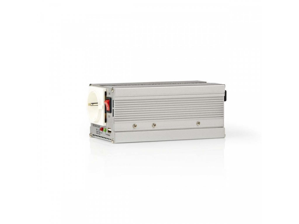 Měnič napětí z 12V DC na 230V AC 300W s USB výstupem, s obdélníkovým výstupním napětím pro napájení přenosných svitilen (ne výbojek, ale s úspornými žárovkami pracuje dobře), faxu, notebooků, ventilátorů, dobíjení telefonů atp. v automobilech, chatách, lodích atp. Měnič napětí se připojuje jednoduše do zásuvky zapalovače nebo pomocí kleští (jsou součástí dodávky) přímo na 12V baterii, chlazení řízeným ventilátorem. Měnič napětí je vybaven CZ kulatou zásuvkou. Měnič je vybaven USB napájecím konektorem pro napájení malých zařízení (fotoaparáty, telefony, iPody atd), které používají USB jako nabíjecí/napájecí rozhraní. Technické parametry: Vstup: 10-15V DC Automobilový (cigaretový) konektor, krokosvorky, šroubovací svorkovnice Při plném zatížení max.35A Bez zatížení < 0.36A Vypnutí při min.vstupním napětí 10 +/- 0.5 V DC Indikace kritické hranice napájení 10.5 +/- 0.5 VDC Automatická ochrana proti vysokému napájecímu napětí Ochrana proti přepólování (pojistka) Výstup: 230V AC +/- 5% 50Hz Trvalý výstupní výkon max.300 W Zvýšený výstupní výkon max.350 W po dobu 30min. Mžikový výstupní max.výkon 600 W Účinnost 90% USB výstup 5V. Tepelná pojistka 60°C +/- 5°C Ochrana proti přetížení Přepěťová ochrana Jištění:pojistka 35A Rozměry v mm.: 163x90x75 Hmotnost 1,1kg.Doplňkové parametry