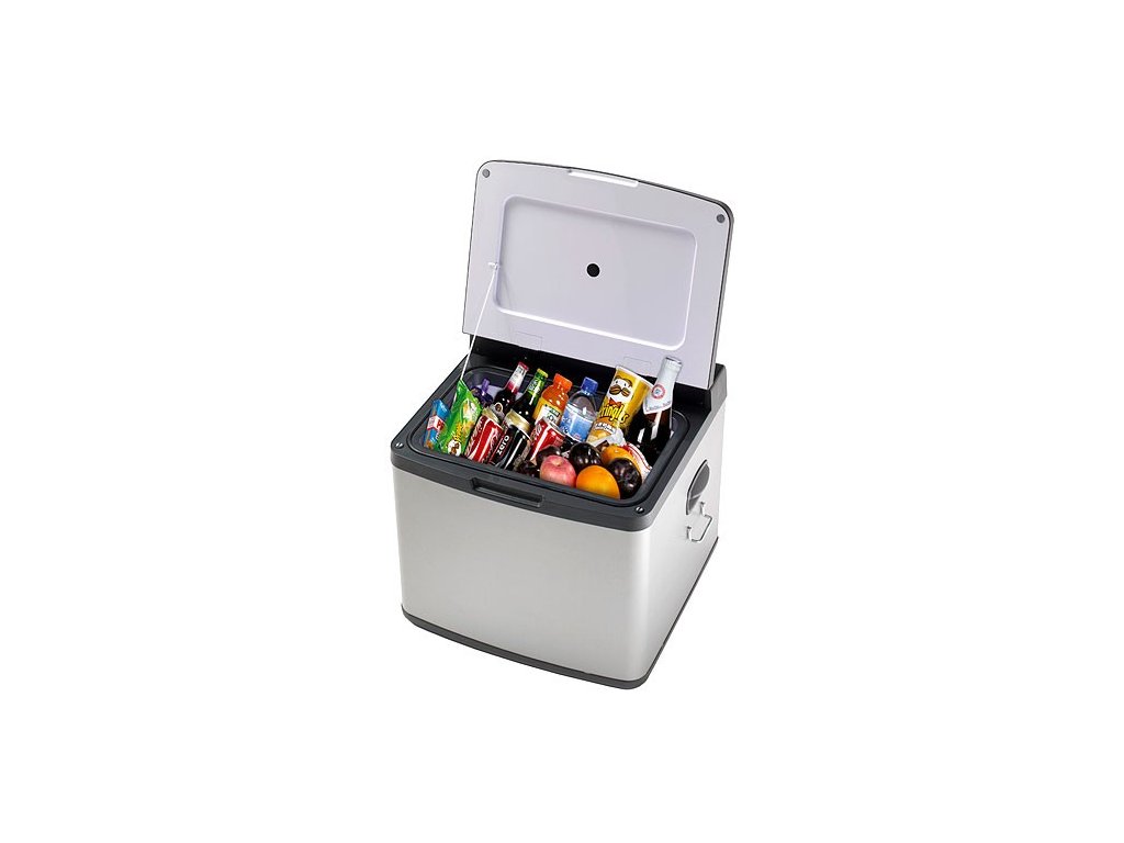 Dopravné po ČR a SK ZDARMA!! TB45A je cenově dostupná autolednička, poněkud odlišná od většiny kompresorových autolednic na trhu. Má jeden chladící prostor, který není nijak rozdělený, takže celý objem je velmi dobře využitelný. Velikou předností je nadstandardně silná polyuretanová izolace, díky níž chladnička vykazuje vysokou účinnost chlazení A+++ při DC napájení, a A++ při AC napájení. To je důležité zejména při delších výletech či expedicích (spotřeby energie jsou uvedeny v parametrech níže). O chlazení se stará osvědčený hermeticky uzavřený kompresor SECOP BD35F se dvěma rychlostmi otáček kompresoru (režim ECO a MAX nastavitelné na řídícím panelu). Napájecí elektronika SECOP si poradí s napájením z 12 nebo 24V a také se střídavým napětím 110-230V. Nechybí podpěťová ochrana autobaterie, kterou lze nastavit ve třech napěťových úrovních. PARAMETRY AUTOLEDNICE TB45A Hrubý objem: 45 litrů Napájecí napětí: DC 12/24V, AC 115-230V 50/60Hz Připojení: DC: zástrčka autozapalovače, AC: PC kabel (obojí je součástí balení autochladničky) DC napájecí kabel délka: 150cm AC napájecí kabel délka: 200cm Vnější rozměry (š/h/v): 550 / 475 / 490 mm Vnitřní rozměry (š/h/v): 430 / 270 / 370 mm Rozsah nastavení teploty: -18°C - +5°C Instalovaný výkon: 45W, při chodu ECO ca 28W, pokud se kompresor netočí: ca 1W Jmenovitý vstupní proud AC: 0,4-0,7A Jmenovitý vstupní proud DC: ECO: 2A MAX:3,8A Rozběh: ca 90W Spotřeba 12/24V DC: 0,155kWh/24h (A+++) @ 0,54Ah za 1h (12V), 0,27Ah za 1h (24V) Spotřeba 110-230V AC: 0,232 kWh/24h Chladivo: R134a (40g) Kompresor: SECOP BD35F Hlučnost: 43dB Izolační hmota: CFC free Polyuretanová pěna Hmotnost: 19kg (+ 2kg kartonový obal) Certifikace: CE, EMC, GS Uvedená cena je včetně zákonného recyklačního poplatku!Doplňkové parametry