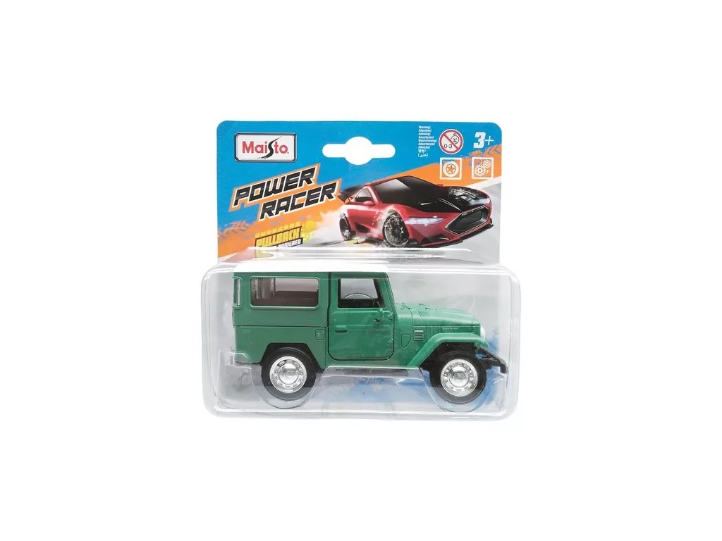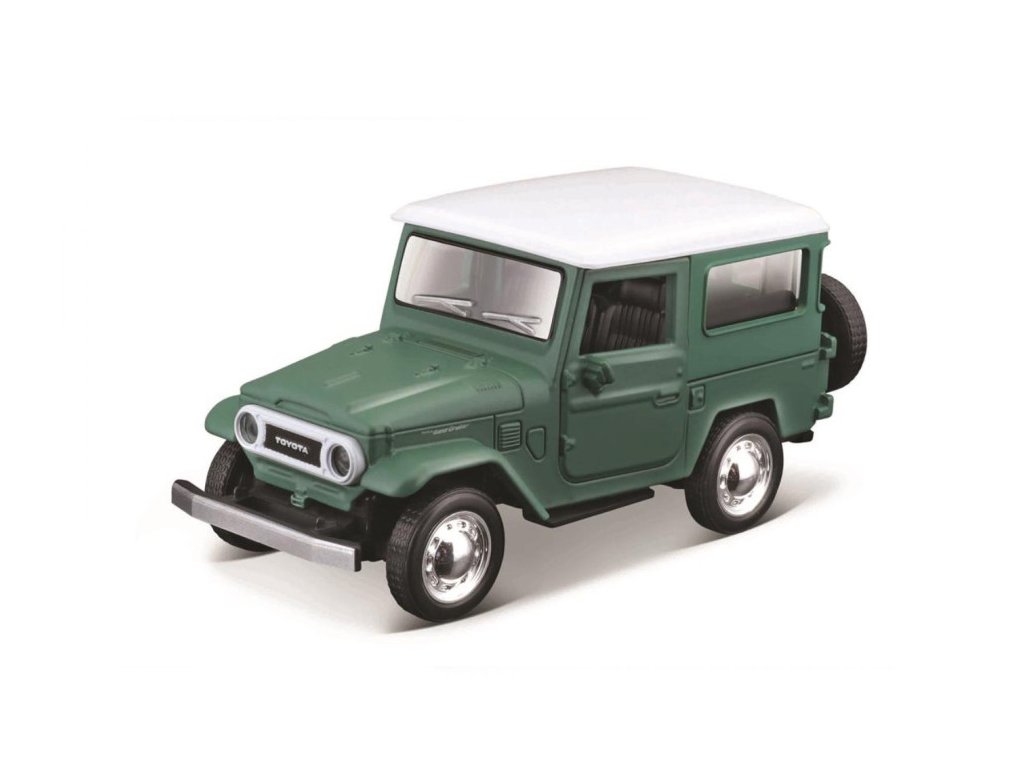 Kovový model auta Toyota Land Cruiser FJ40 v zelené barvě. Značka Maisto, měřítko 1:36.