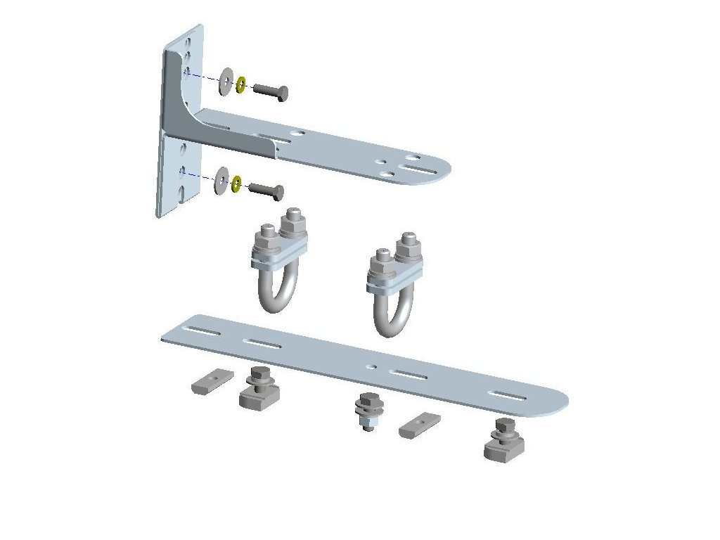 Doporučujeme zakoupit minimálně 2 kusy pro pevné upevnění markýzy k střešnímu nosiči či příčníkům. Pro montáž markýzy s délkou 2,5 m doporučujeme použít 3 kusy univerzálního držáku.
