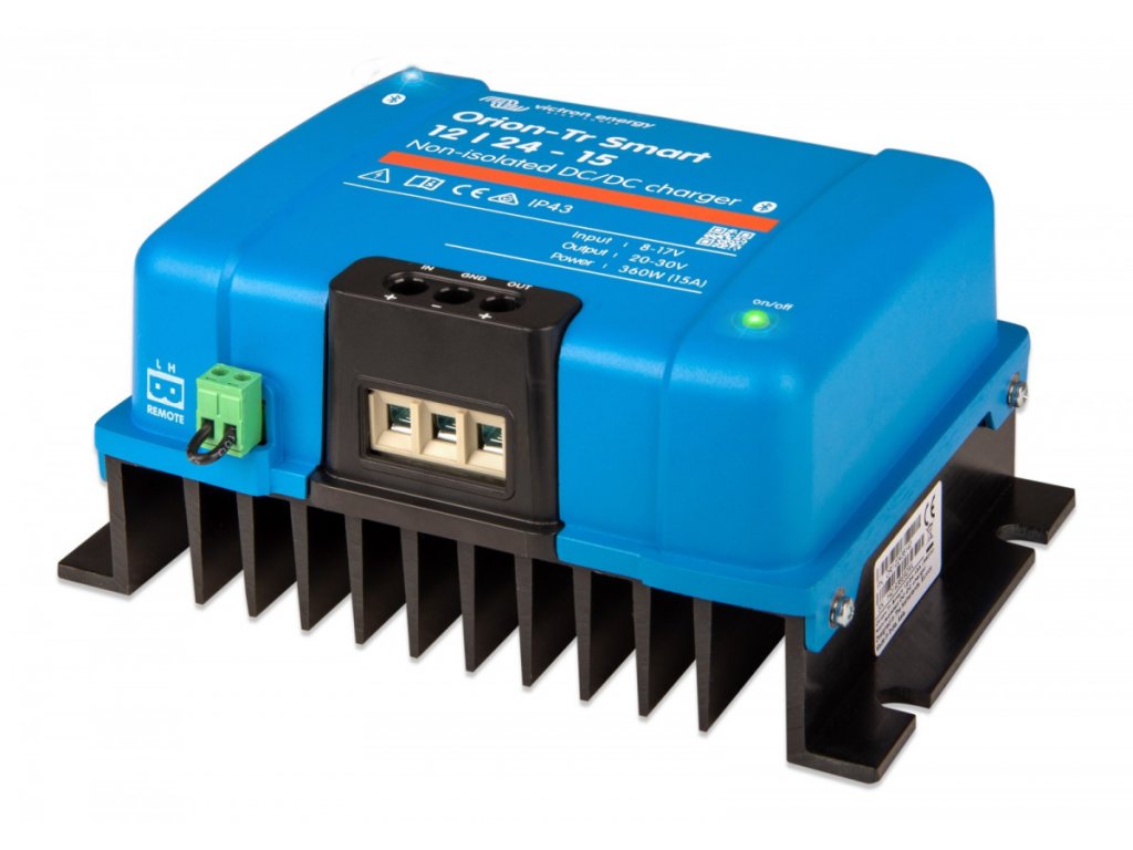 Orion-Tr Smart DC-DC nabíječ je profesionální DC/DC nabíječ (neizolovaný-společné mínus) s 3 fázovou adaptivní nabíjecí charaktreristikou, kterou lze plně uživatelsky nastavit pomocí vestavěného Bluetooth rozhraní (1). Zařízení lze také nastavit a používat jako napájecí zdroj s nastavitelným napětím. Tento nabíječ je určen pro nabíjení druhé baterie v systémech s běžným alternátorem, ale i chytrým alternátorem, který je nastaven k minimalizování spotřeby paliva a dobíjí baterii například jen při jízdě z kopce. Tyto alternátory dodávají velmi proměnlivé napětí a jsou často vypínány. Řízená nabíjecí charakteristika je také vhodná pro použití s lithiovými bateriemi, které jinak mohou přetěžovat alternátor. Nabíječ lze nastavit tak, aby nabíjel druhou baterii pouze v případě, že je nastartovaný motor, detekční hladiny napětí lze opět libovolně nastavit. Nebo jej lze "natvrdo" ovládat spínačem zapalování. Adaptivní 3 fázový nabíjecí algoritmusNabíječ automaticky upravuje a kontroluje dobu, po kterou trvá absorpční nabíjecí program. Tím zabraňuje přebíjení lehce vybité baterie a naopak u hluboce vybité baterie, je tato doba delší, aby baterie byla plně dobita. Všechny modely jsou zkratuvzdorné a mohou být řazeny paralelně (libovolné množství), k navýšení výstupního výkonu. Orion-Tr Smart mají teplotní ochranu, upravují výstupní výkon s ohledem na svoji teplotu, aby nedošlo k poškození zařízení. Použitelné jsou až do teploty 55°C, přičemž plný výkon poskytují až do teploty 40°C PARAMETRY ORION-TR SMART DC-DC 12/12-30A neizolovaný (společný mínus) Vstupní napětí (2): 10-17 VVypnutí při podpětí: 7 V, restart: 7,5 VJmenovité výstupní napětí: 12,2 V (při nastavení jako napájecí zdroj)Rozsah nastavení výstupního napětí: 10-15 VTolerance výstupního napětí: +- 0,2 VJmenovitý výstupní proud až do teploty 40°C: 30 AMaximální výstupní proud (10s) při jmenovitém výstupním napětí%: 40 AZkratový výstupní proud: 60 ATrvalý výstupní výkon při 25°C: 430 WTrvalý výstupní výkon při 40°C: 360 WÚčinnost: 87 %Spotřeba na prázdno: < 80 mAGalvanická izolace mezi vstupem a výstupem: ano, 200V mezi vstupem/výstupem a skříní.Pracovní teplota: -20 až +55°C (snížení výkonu o 3% na každé % nad 40°C)Připojení kabelů: šroubovací svorky pro kabely max 16mm2Hmotnost: 1,8 kgRozměry: 130 x 186 x 80 mmKrytí proti vodě: IP43 při instalaci šroubovými svorkami směrem dolůNORMY:Bezpečnost: EN 60950Emise: EN 61000-6-3, EN 55014-1Odolnost: EN 61000-6-2, EN 61000-6-1, EN 55014-2Homologace: ECE R10-5Normy se mohou během času měnit a doplňovat další 1) Stáhněte si z obchodu Google Play aplikaci VictronConnect, jděte do menu Demo library, vyberte si produkt Orion Smart a vyzkoušejte si všechny možnosti nastavení ORION-TR SMART DC-DC na Vašem mobilu.2) Pokud je výstupní napětí nastaveno na jmenovitou hodnotu, nebo níže, zůstává stabilní v celém rozsahu vstupního napětí (v režimu "napájecí zdroj"). Pokud výstupní napětí nastaveno o několik procent výše nad jmenovitou hodnotu, pak se hodnota minimálního vstupního napětí, při kterém je výstupní napětí stabilní, zvedá o stejnou procentní hodnotu.Doplňkové parametry